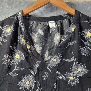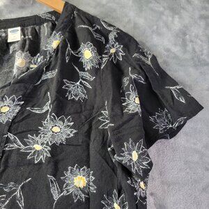 Old Navy Womens Floral V-Neck Blouse Medium Black Daisy Print Casual Everyday