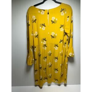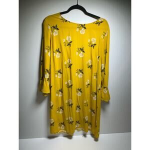 Old Navy Women’s Golden Yellow Floral Print Size Large Ruffle Bell Sleeve Dress