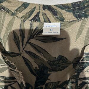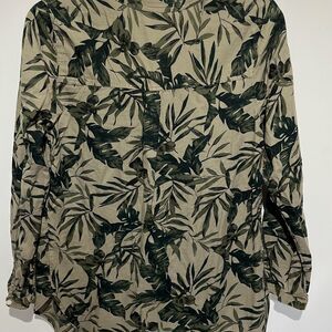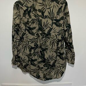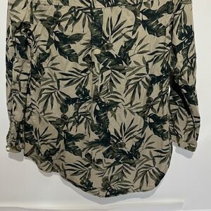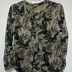 Old Navy Women's Green Tropical Split Neck Half Button Long Sleeve Blouse Medium
