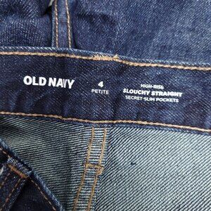 Old Navy Womens High Rise Button Fly Cropped Jeans Size 4P Straight Leg Blue Dark Wash
