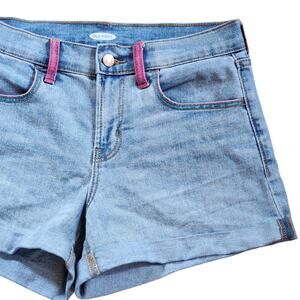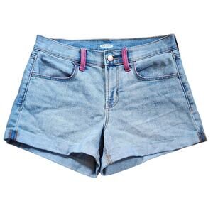 Old Navy Womens High Waisted Wow 3 In Jean Shorts Size 0 Blue Cuffed Smiley Face