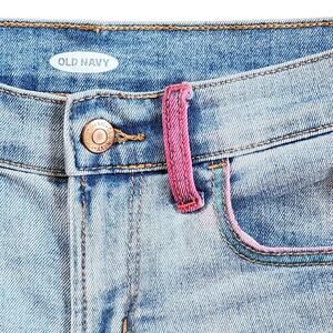 This is a pair of Old Navy women's high-waisted denim shorts in size 0. The shorts feature a cuffed hem and painted smiley face design on the back pockets, making them a stylish and unique choice for casual occasions. Made from a blend of polyester, spandex, and cotton, they offer a comfortable fit with stretch. With a 3-inch inseam and a high-rise waist, these shorts are a trendy addition to any wardrobe, perfect for pairing with your favorite top for a chic and casual look. Nice condition but they have been altered with super cute painted/dyed belt loops and back pockets.