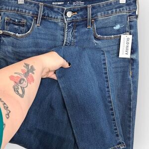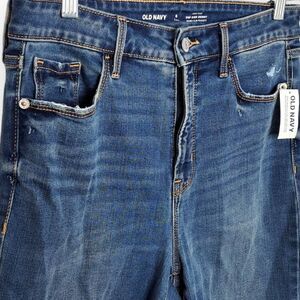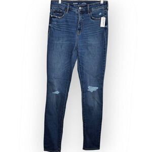 Old Navy Women's High-Waisted Distressed Pop Icon Skinny Jeans in Medium Indigo Wash size 8 Tall NWT