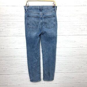 Description: Old Navy Sky High Straight leg jeans in good preowned condition; button fly, distressed