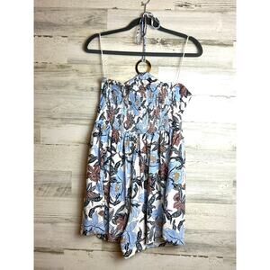 Old Navy Women’s Large Blue Floral Strapless Cotton Romper w/ Pockets NWT