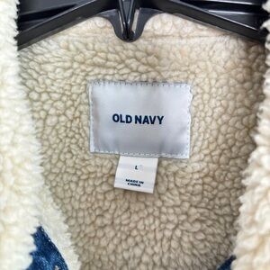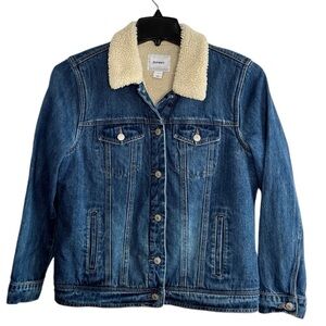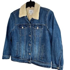 Old Navy Womens Large Sherpa Lined Medium Wash Trucker Jean Denim Jacket Western