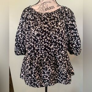 Old Navy Women’s Large Short Sleeve Black and White Flowered Cotton Peplum Top