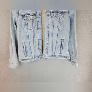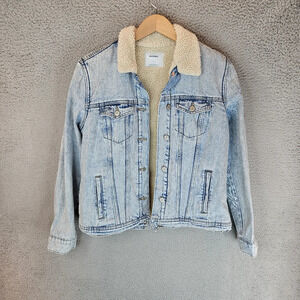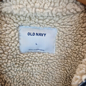 Old Navy Womens Light Denim Trucker Jacket Sz L Faux Sherpa Cozy & Warm Pockets