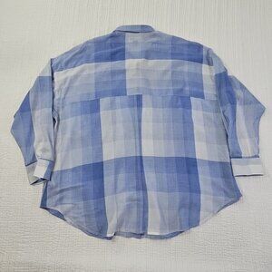 Old Navy Women's Loose Gossamer Boyfriend Shirt Blue White Plaid Size XXL