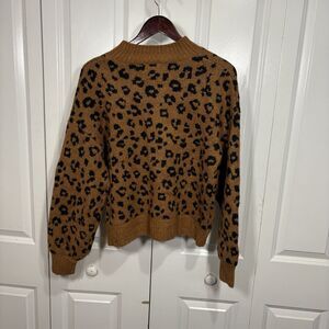 Old Navy Womens M Sweater Brown Black Leopard Animal Print Knit Boho Fall Cozy