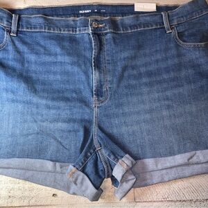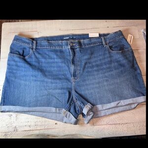 Brand new with tags. Size 26. Read rise wow Jean shorts. 3.5 inch inseam. waist 25 inches. Belt, loops button and zip closure. Rolled up leg openings. Medium light wash. Cotton blend. 69% cotton 30% polyester% 1% spandex.