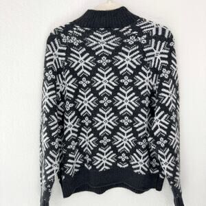 Old Navy Womens Mock Neck Sweater Size L Wool Blend Snowflake Holiday Gray