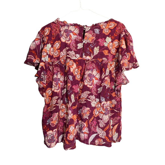 Old Navy Womens Multicolor Floral Round Neck Flutter Sleeve Smocked Blouse Sz XL