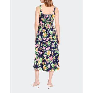 This navy blue midi dress from Old Navy boasts a timeless floral design, perfect for warmer seasons. Made from a breathable linen blend, it ensures comfort and elegance for casual outings or gatherings. Its soft structure, combined with functional side pockets and a flattering fit, makes it a versatile wardrobe staple.