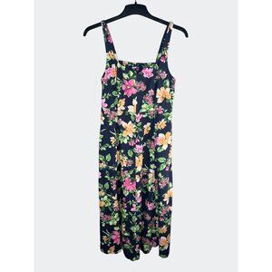 Old Navy Womens Navy Blue Floral Fit & Flare Linen Blend Midi Dress Size Medium