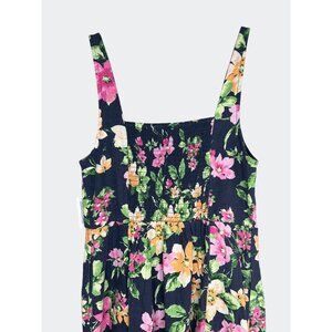 Old Navy Womens Navy Blue Floral Fit & Flare Linen Blend Midi Dress Size Medium
