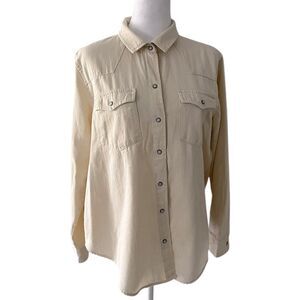 Old Navy Women’s Neutral Minimalist Western Denim Shirt Off-White Size L