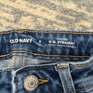 Stylish straight leg jeans from Old Navy. Dark blue hue for versatile wear. Comfortable and chic.