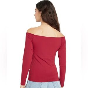 Elevate your style with this chic off-shoulder red top. Perfect for any occasion, this top offers a flattering fit and a bold color that stands out.