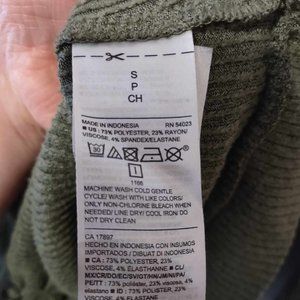 This Old Navy women's olive green knit top is perfect for adding a pop of color to your wardrobe. The knot front design adds a playful touch to the top, making it great for casual wear. The size small fits true to size and is made from a comfortable knit material. The top is in great condition and ready to be worn. Pair it with jeans or shorts for a laid-back look or dress it up with a skirt for something more formal. The versatile green color makes it easy to coordinate with different outfits. Don't miss out on this stylish and comfortable addition to your wardrobe.
