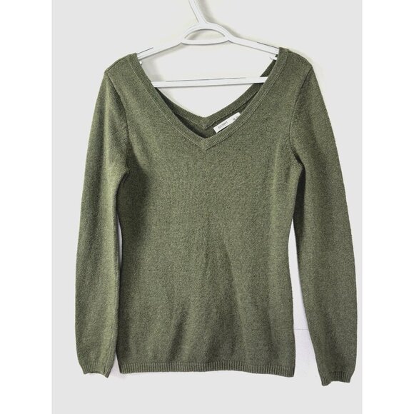 Old Navy Womens Olive Green V Neck V Back Sweater M Preppy Y2K Classic Minimal