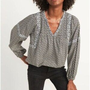 Old Navy Womens Oversize Floral Printed Poet Swing Long-Sleeve Split Neck M Tall