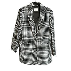 This stylish houndstooth coat by Old Navy is perfect for layering in fall and winter. Designed in an oversized fit, it features a classic black-and-white houndstooth pattern with a button-front closure and front pocket details, combining timeless style with cozy comfort.