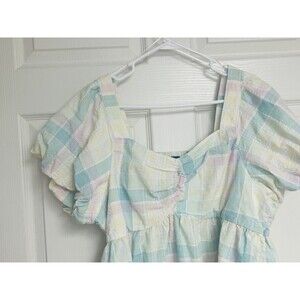 Old Navy Women's Pastel Pink Blue Yellow Puff Sleeve Cropped Top Size XL Ruffle