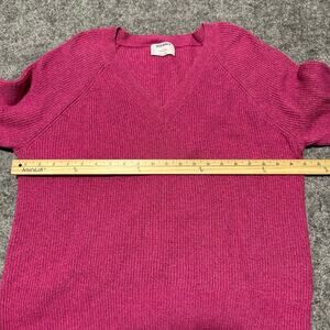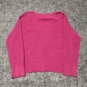 Cozy rib-knit Old Navy sweater in a vibrant pink shade. Features a flattering V-neckline, raglan sleeves, and a relaxed, comfy fit. Soft texture with a slightly boxy silhouette.