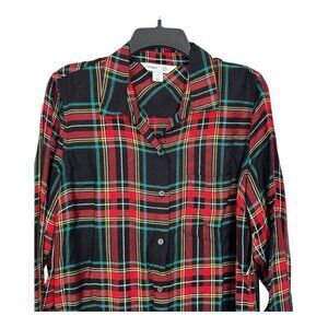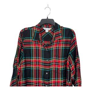 Old Navy Womens Plaid Button-Up Long Sleeve Shirt Top Size L Red/Green/Black