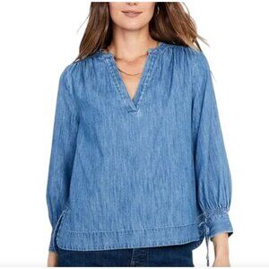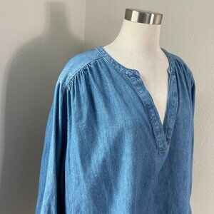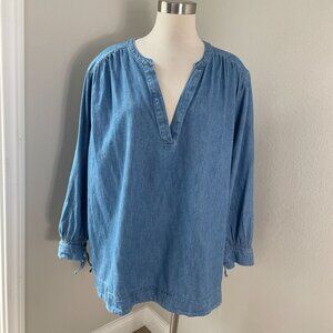 Old Navy Womens Plus 3X Chambray V Neck Top Long Sleeve Tie Cuff Shirt