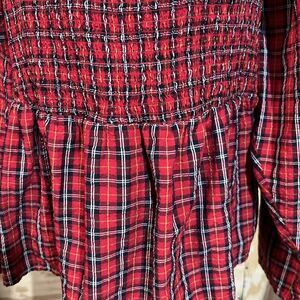 Old Navy Womens Plus 3X Red Tartan Plaid Blouse Smocked. Lightweight. Smocked bust area. Slit sleeve at the wrist.