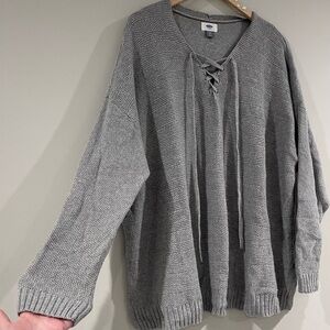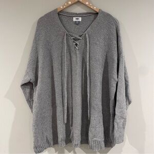 Old Navy Women’s Plus Size Lace Up Pullover Sweater in Neutral Gray. Fits Size XXL.