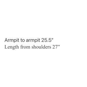 No visible flaws. Measurements: Armpit to armpit = 25.5 inches, Length from shoulders = 27 inches.