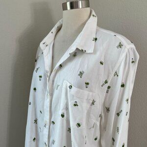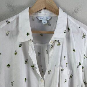 Old Navy Womens Plus XXL Classic Button Up Shirt Succulent Plant Print Top