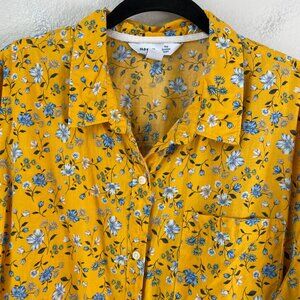 Old Navy Womens Plus XXL Classic Shirt Yellow Floral Button Up Long Sleeve Top