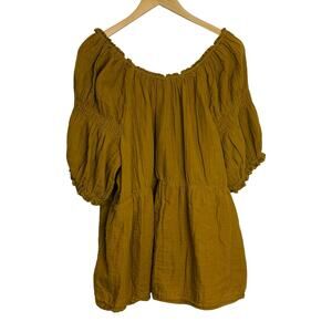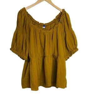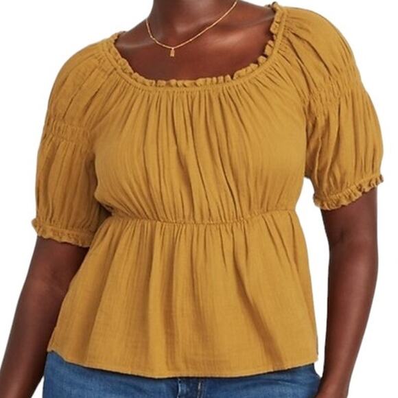 Old Navy Women's Puff Sleeve Shirred Baby Doll Blouse Dark Gold Brown Size 3x