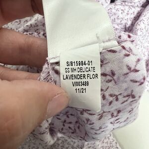 Two small stains near the front neckline tie very hard to notice due to the busy print