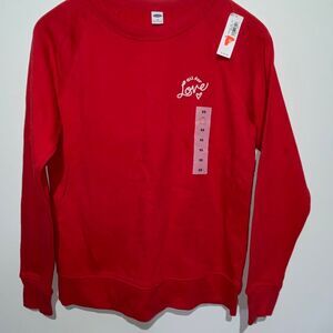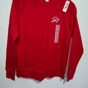 Old Navy Women's Red ‘All For Love’ Crewneck Pullover Sweatshirt Size XS NWT