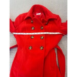 Keywords: Old Navy, red coat, pea coat, fleece jacket, womens jacket, double breasted, belted coat, outerwear, casual jacket, fall fashion, winter coat, red outerwear, medium, size M