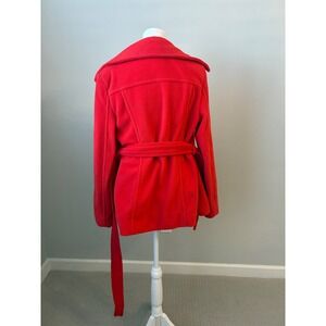 Old Navy Womens Red Fleece Pea Coat Jacket Double Breasted Belted Size M
