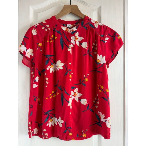 Old Navy Women's Red Floral Button Front Blouse Top Size XS