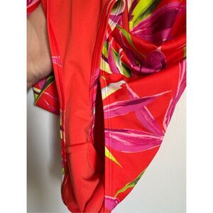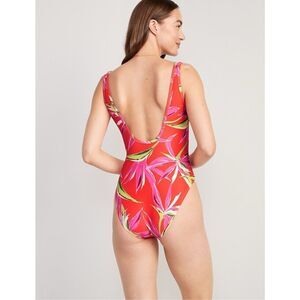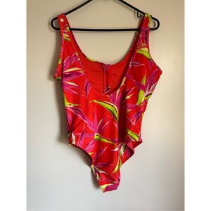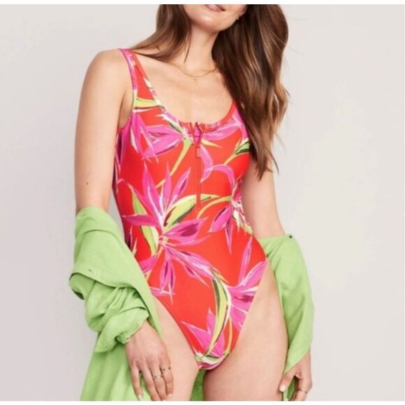 Old Navy Womens Red Floral Half Zip One Piece Swimsuit sz L Vacation Beach