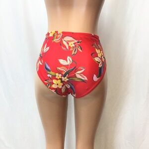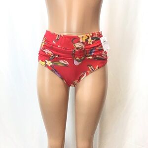 Old Navy Womens Red Floral High Waisted Belted O-Ring Bikini Bottom Size Medium. New with tag and hygiene liner. Label may be marked through to prevent return to store fraud. From smoke free home.