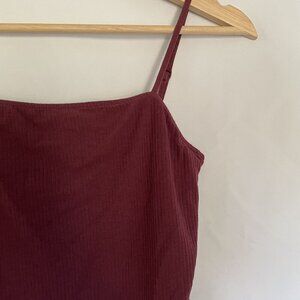 Old Navy Womens Ribbed Burgundy Bodysuit Spaghetti Straps Snap Closure Medium
