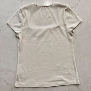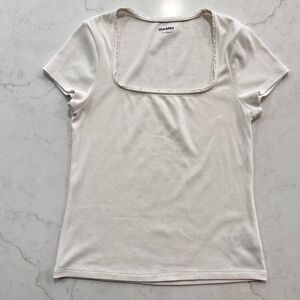 Old Navy Women's Ribbed T-Shirt - Scoop Neck with Trim Detail - Ivory - Large