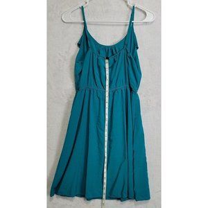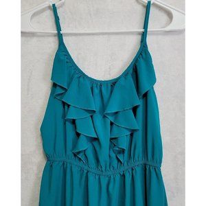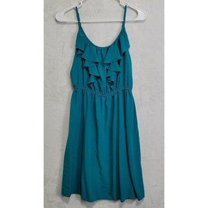 Old Navy Women's Ruffle Front Dress Spaghetti Strap Size S Turquoise 100% Rayon