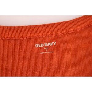 This Old Navy top presents a sophisticated look with its ribbed knit texture and rich rust orange hue. Designed for comfort and style, it features a snug fit, ideal for layering or standalone wear. Its long sleeves make it suitable for cooler weather, offering both warmth and elegance.