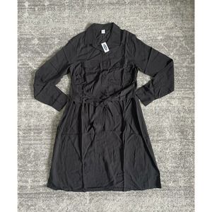 Old Navy Womens S Maternity Dress Black Long Sleeve Button Down Collared Knee K4