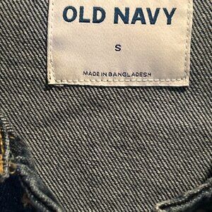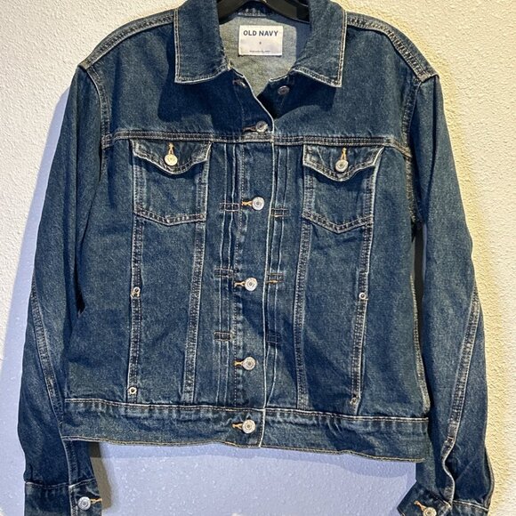 Old Navy Womens SMALL Stretch Button Up DARK Wash Trucker Denim Jean Jacket